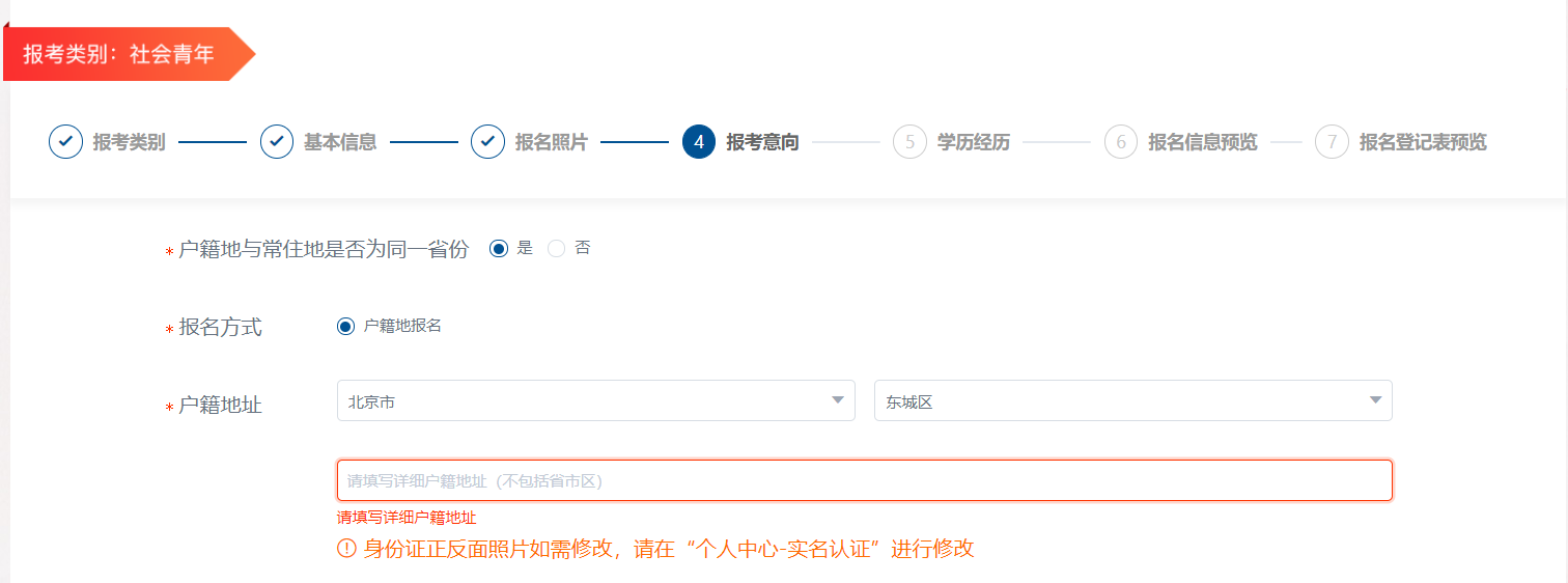 ②“按常住地报名”需填写户籍地地址及常住地地址、上传居住证正、反面照片,仅限报考常住地省份。