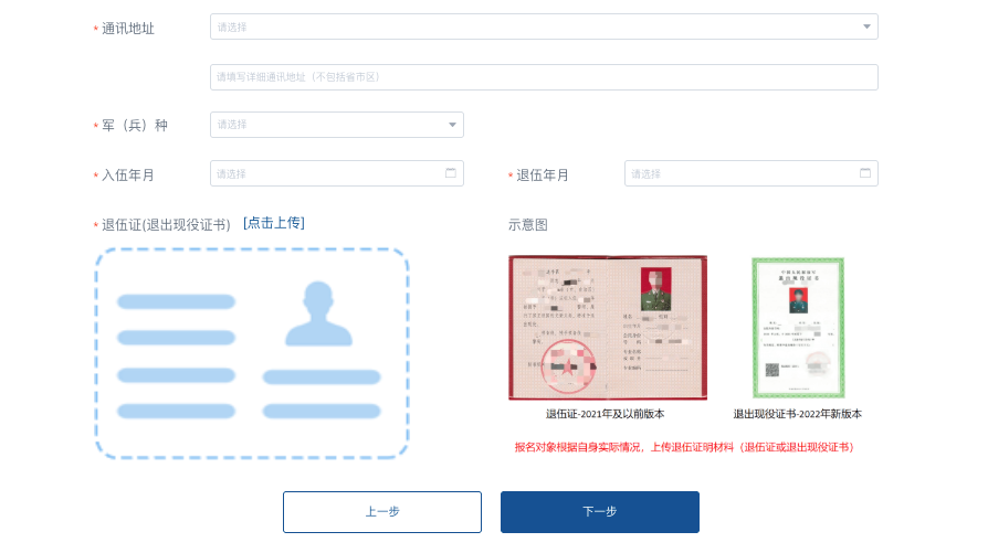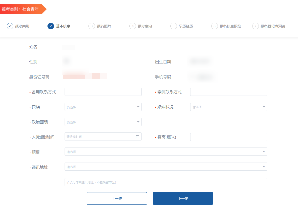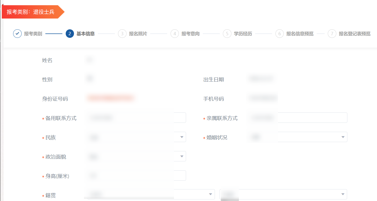 (社会青年、退役士兵以及高校应届生学历经历填报页)