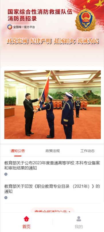 用户注册成功之后,通过官方平台二维码扫码后,可查看通知公告、政策法规、工作动态栏目、登录个人中心,查看报名进展。
