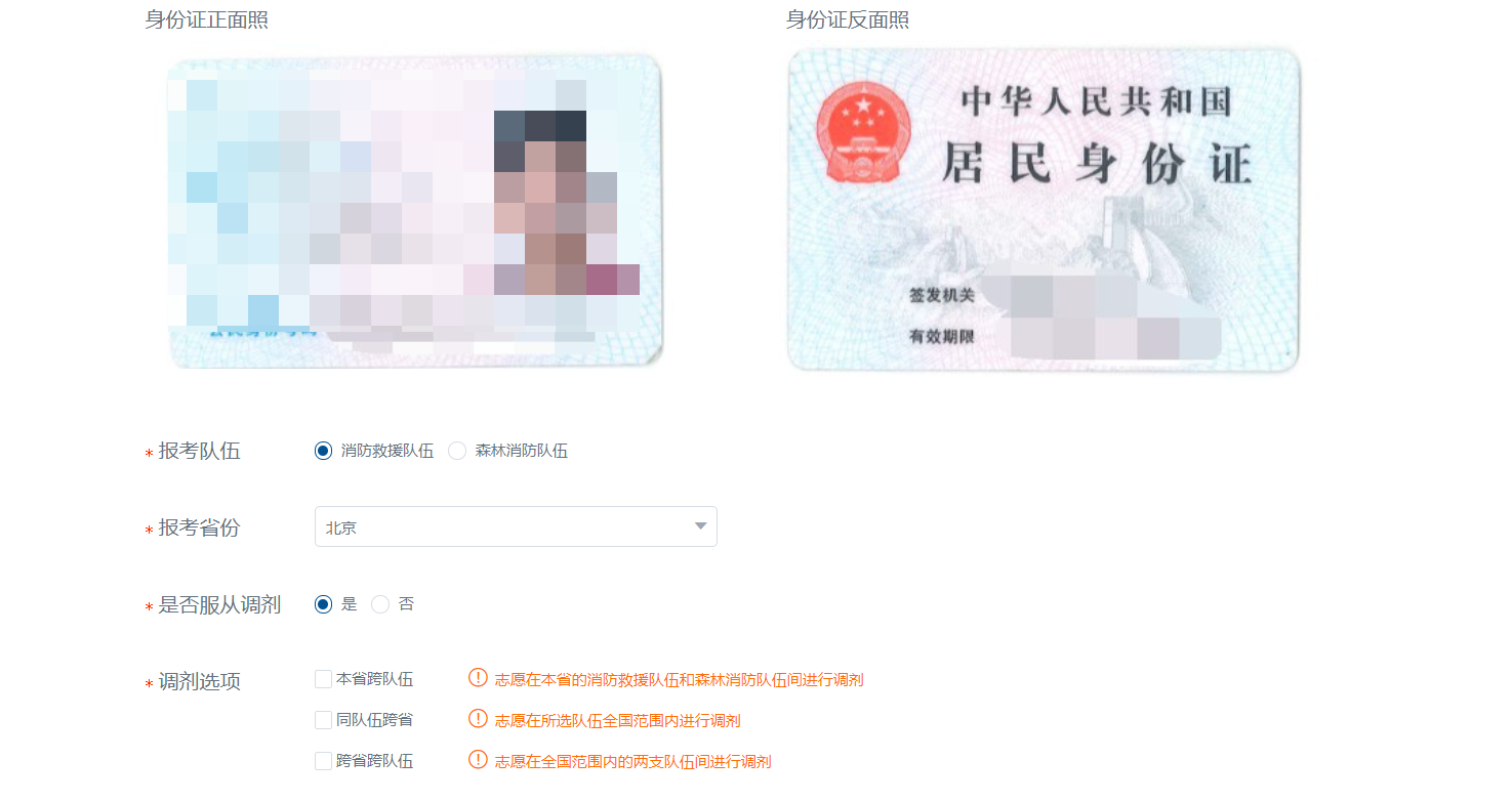 报考队伍意向:报名对象选择“消防救援队伍”或“森林消防队伍”。